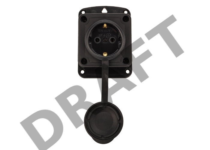 Розетка штепсельная угловая влагозащищенная стационарная ОУ, 2P+PE 230V,16 А, IP44 каучук PROconnect