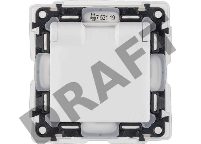 Розетка силовая 2К+З, с защитными шторками и откидной крышкой. Белая Valena LIFE IP44