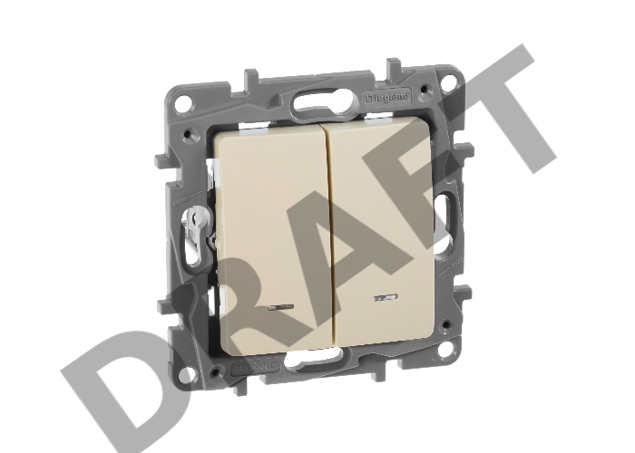 Выключатель 2-клавишный с подсветкой, на винтах, 10АХ, сл. кость