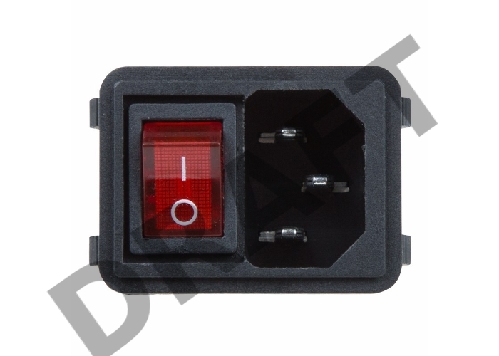 Выключатель клавишный 250V 10А (4с) ON-OFF красный с подсветкой и штекером C14 3PIN REXANT