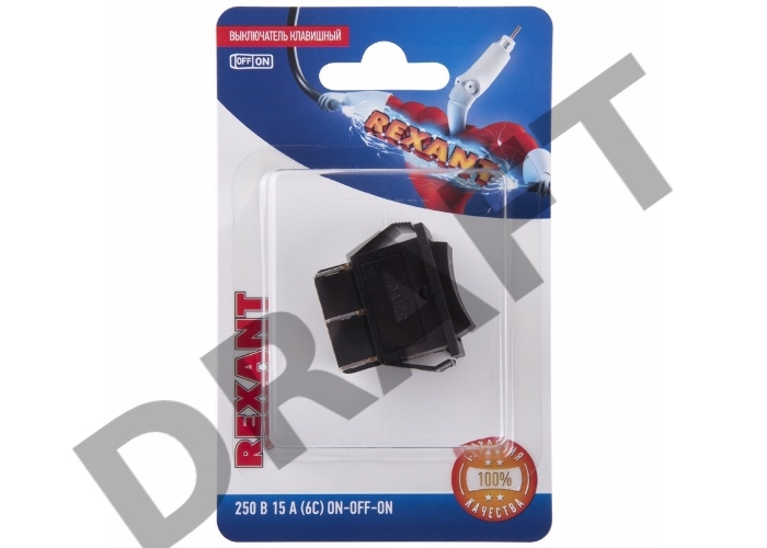 Выключатель клавишный 250V 15А (6с) ON-OFF-ON черный с нейтралью (RWB-508, SC-767) REXANT (в упак. 1шт.)