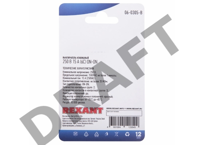 Выключатель клавишный 250V 15А (6с) ON-ON красный с подсветкой (RWB-506, SC-767) REXANT (в упак. 1шт.)