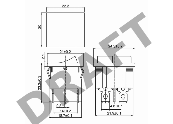 Выключатель клавишный 250V 6А (6с) ON-OFF красный с подсветкой ДВОЙНОЙ Mini REXANT