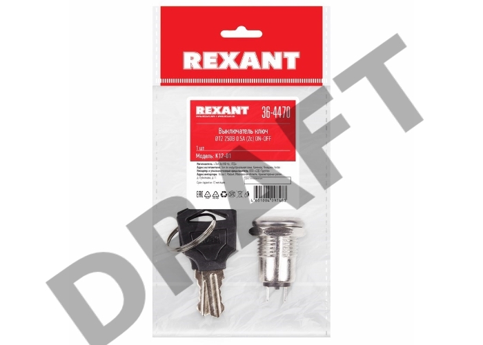 Выключатель ключ Ø12 250V 0.5А (2с) ON-OFF REXANT