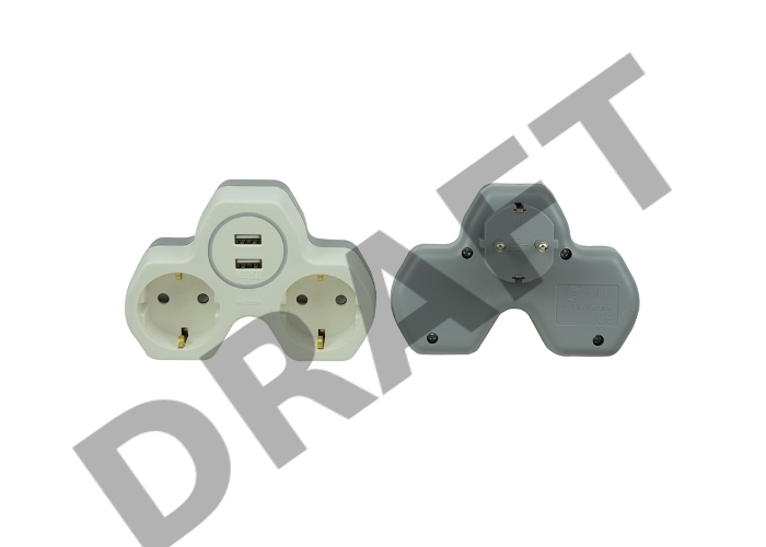 Двойник электрический REXANT 16 А с заземлением и защитными шторками + 2 USB порта, 2,4 А, белый