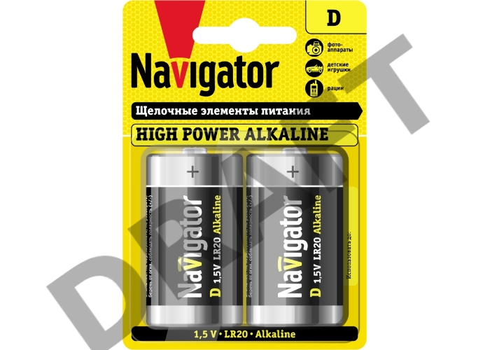 Элемент питания алкалиновый 94 755 NBT-NE-LR20-BP2 (блист.2шт) Navigator 94755
