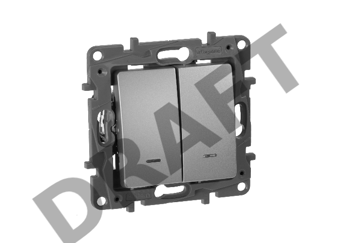 Переключатель 2-клавишный с подсветкой, 10AX, авт. зажимы, алюминий