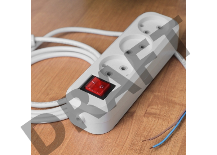 Колодка 3 гнезда с кнопкой без заземления REXANT