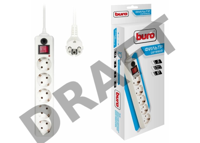 Сетевой фильтр Buro 500SH-10-W 10м (5 розеток) белый (коробка)