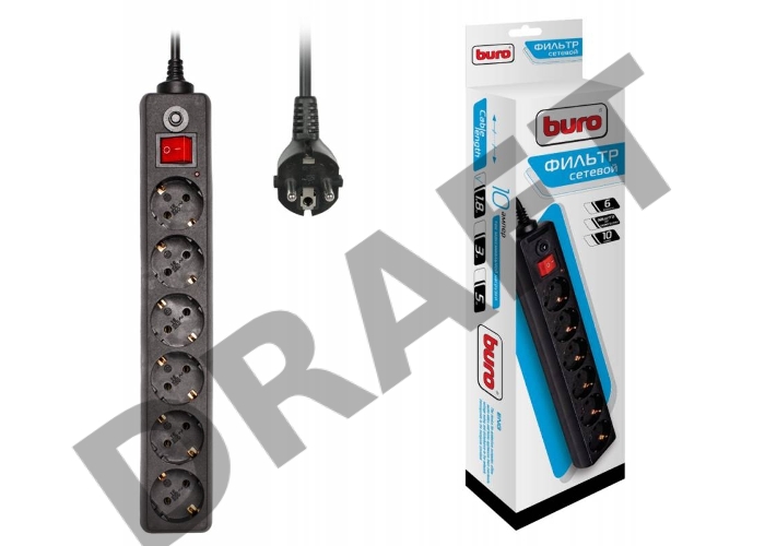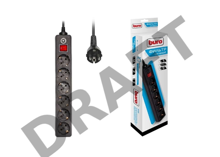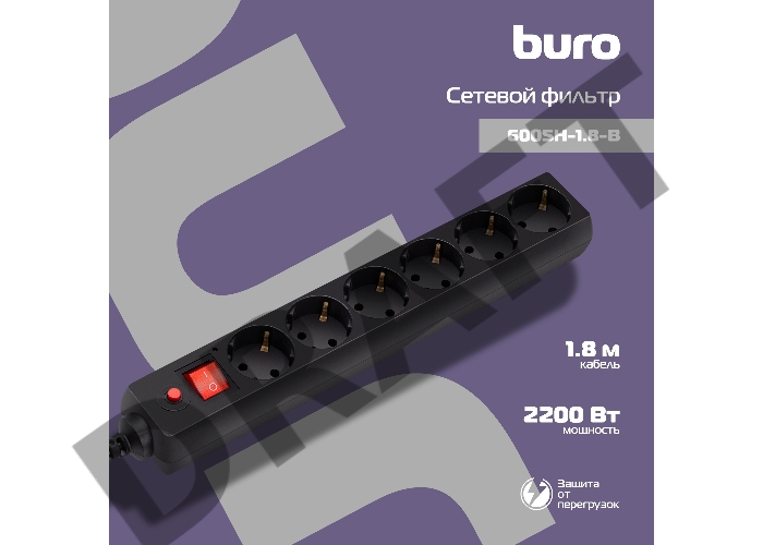 Сетевой фильтр Buro 600SH-1.8-B 1.8м (6 розеток) черный (коробка)