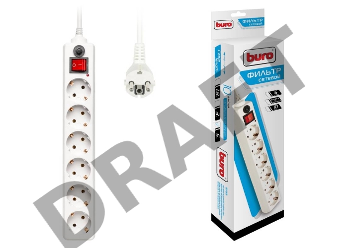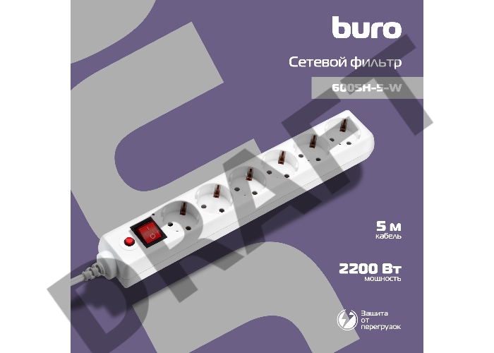 Сетевой фильтр Buro 600SH-5-W 5м (6 розеток) белый (коробка)