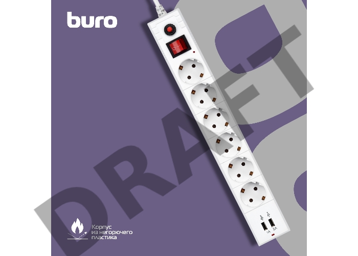 Сетевой фильтр Buro BU-SP1.8_USB_2A-W 1.8м (6 розеток) белый (коробка)