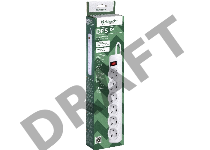 Сетевой фильтр Defender DFS 151 1,8 м, белый, 6 розеток 99489