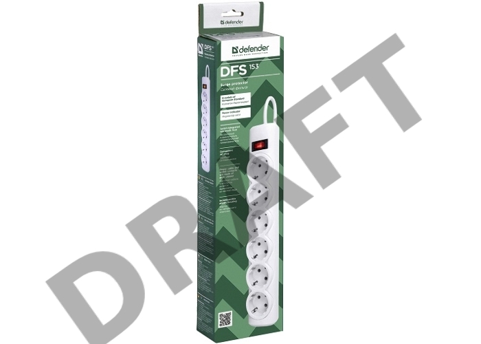 Сетевой фильтр Defender DFS 153 3 м, белый, 6 розеток