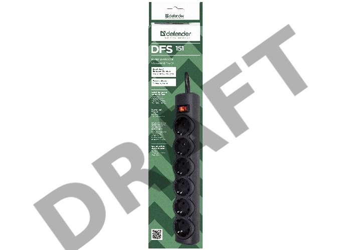 Сетевой фильтр Defender Фильтр DFS 151 1.8 m, 6 розеток, черный 99494