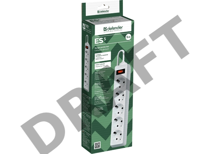 Сетевой фильтр Defender Фильтр ES, 5.0м, 5 розеток белый 99483