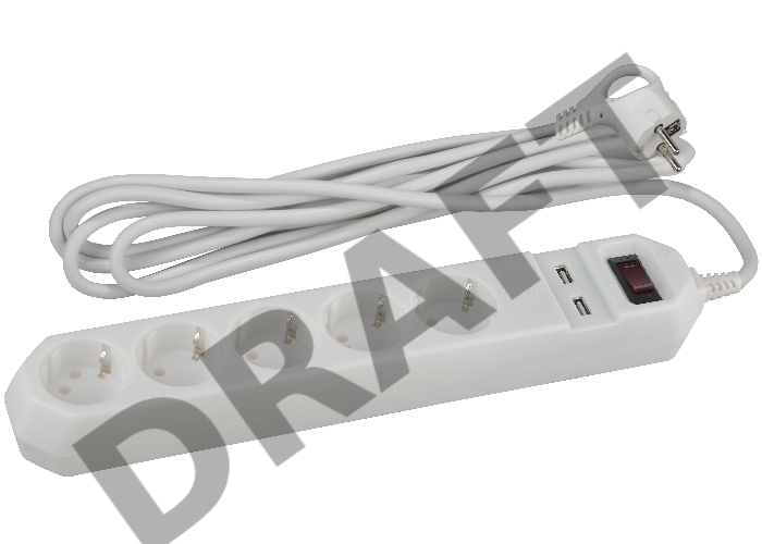 Сетевой фильтр ЭРА белый USF-5es-1.5m-USB-W с заземл 3x0.75мм2 с выкл 5гн+2USB 1.5м
