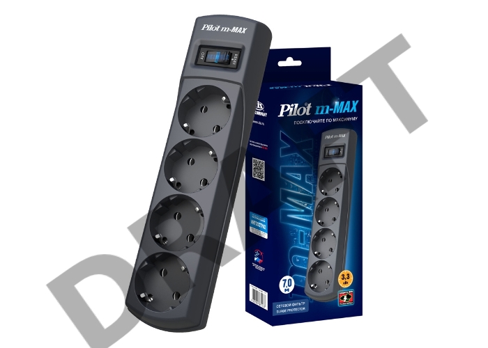 Сетевой фильтр Pilot m-MAX 7м (4 розетки) серый (коробка)