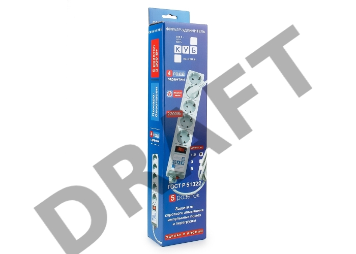 Сетевой фильтр POWER CUBE 1,9 м.* 5 розеток, светло-серый