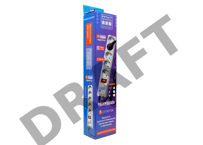 Сетевой фильтр Powercube SPG-B-10 3м (5 розеток) серый (коробка)