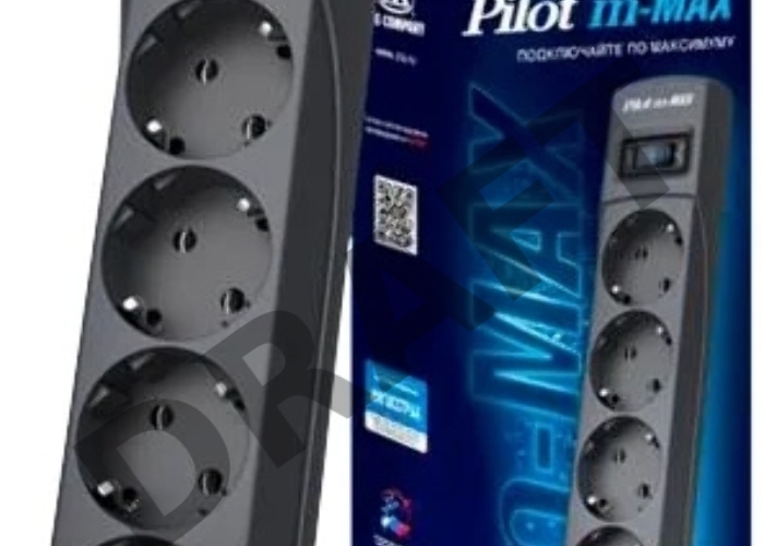 Сетевой фильтр ZIS Pilot m Max 4 розетки (евро с заземлением), 15А/3.3кВа, автомат, 3 м, черный Surge protector Pilot m Max 4 euro outlets, 15А/3.3кВа, 3m, black