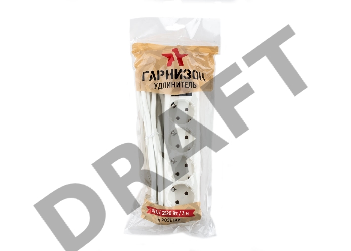Удлинитель Гарнизон ELB-G4-W-3, 4 евророзетки с выключателем и заземлением, допустимый ток 16А, длина 3м.