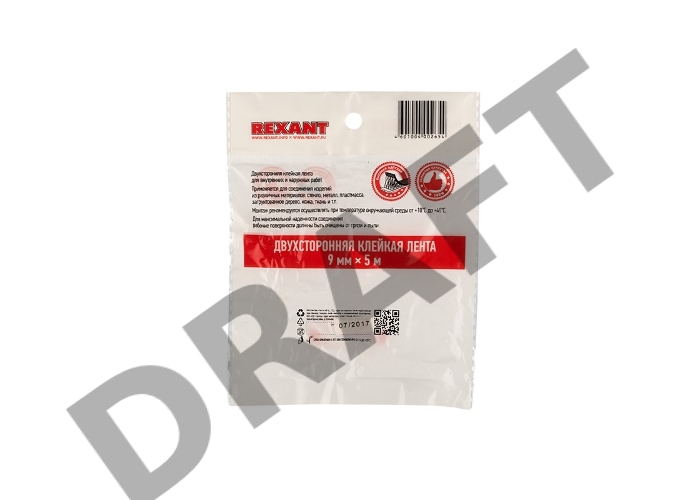 Двухсторонний скотч , серый, на HBA акриловой основе, 9 мм, ролик 5 м | 09-6009 | REXANT