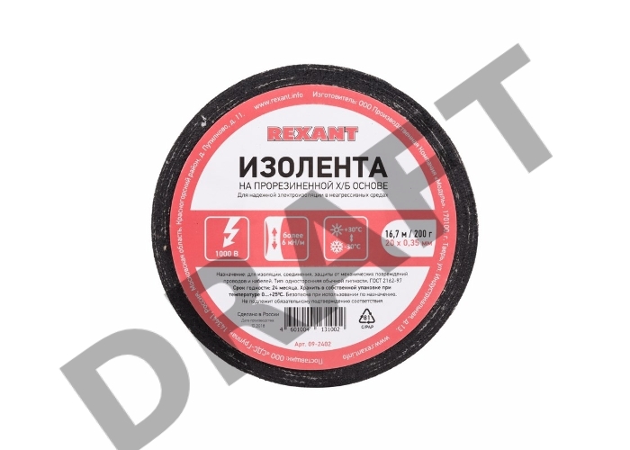Изолента ХБ REXANT 20 х 0,35 мм, (ролик 16,7 м/200 г) (1-ПОЛ)