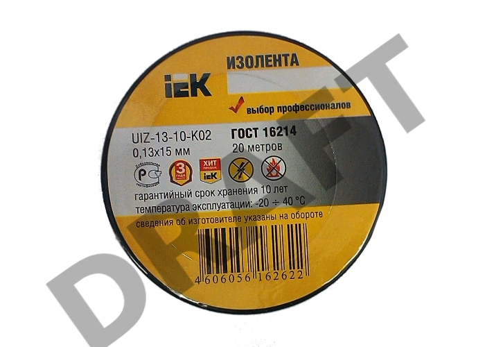 Изолента Iek UIZ-13-10-K02 0,13х15 мм черная 20 метров ИЭК