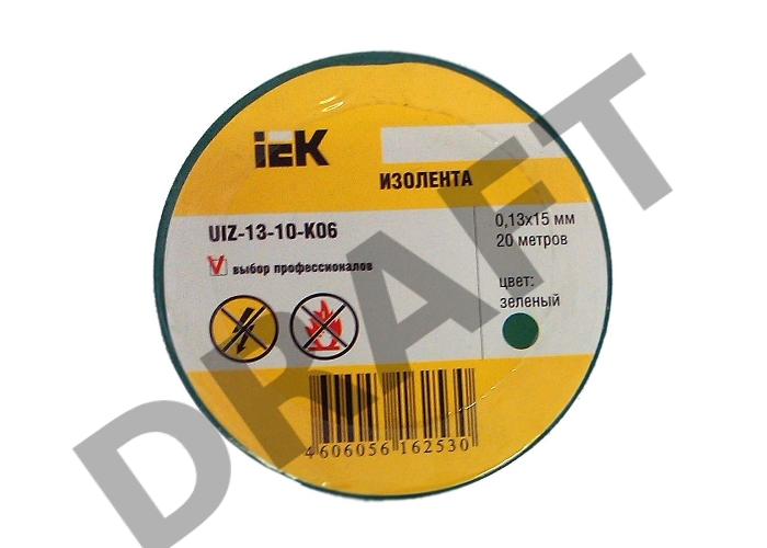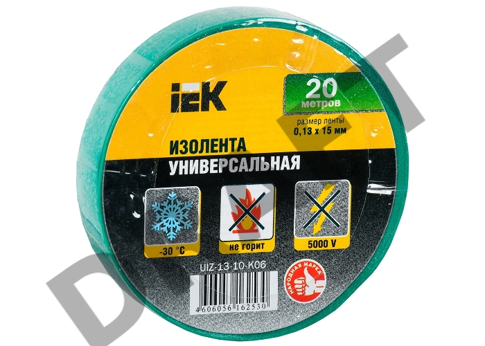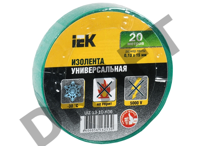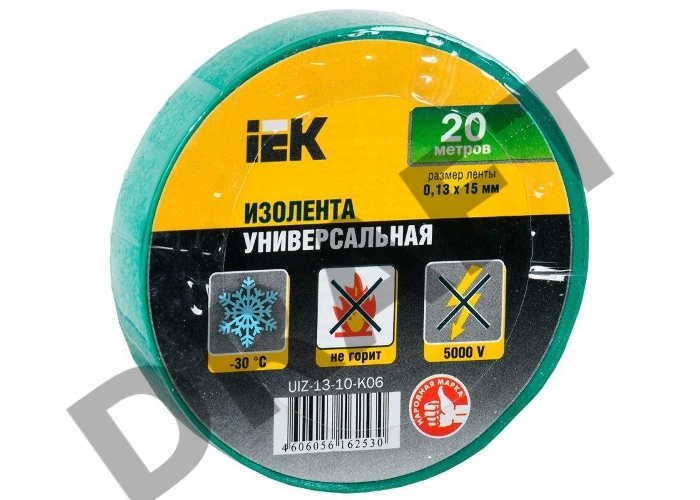 Изолента Iek UIZ-13-10-K06 0,13х15 мм зеленая 20 метров ИЭК