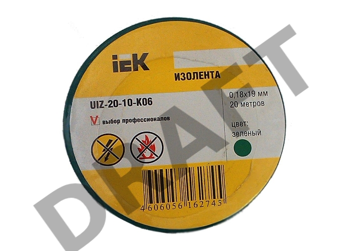 Изолента Iek UIZ-20-10-K06 0,18х19 мм зеленая 20 метров ИЭК