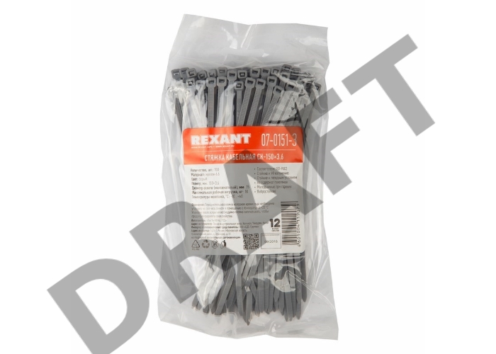 Хомут-стяжка кабельная нейлоновая REXANT 100 x2,5 мм, серая, упаковка 100 шт.