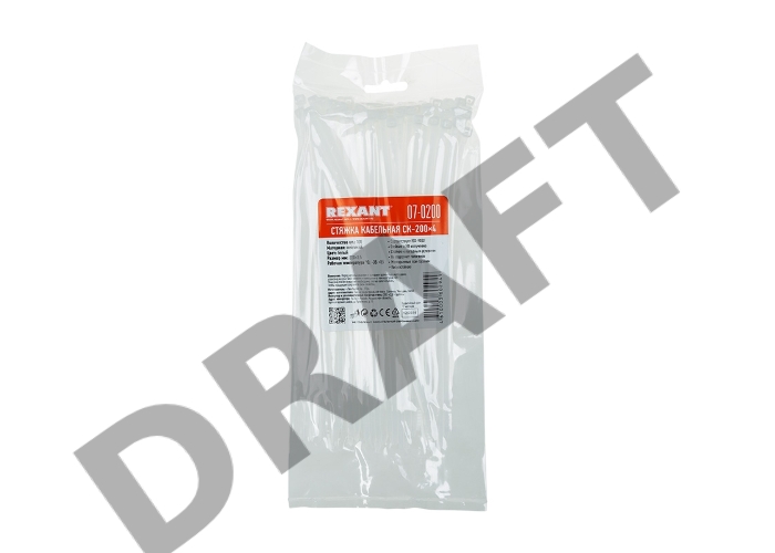 Хомут-стяжка кабельная нейлоновая REXANT 200 x 3,6 мм, белая, упаковка 100 шт.