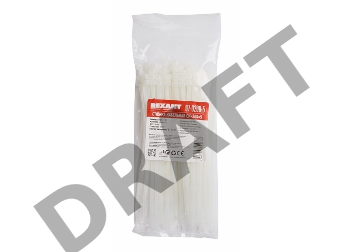 Хомут-стяжка кабельная нейлоновая REXANT 200 x4,8 мм, белая, упаковка 100 шт.