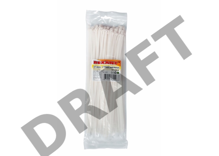 Хомут-стяжка кабельная нейлоновая REXANT 300 x7,6 мм, белая, упаковка 100 шт.