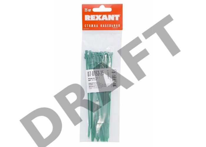 Хомут-стяжкa нeйлонoвая REXANT 150x2,5 мм, зеленая, упаковка 25 шт.