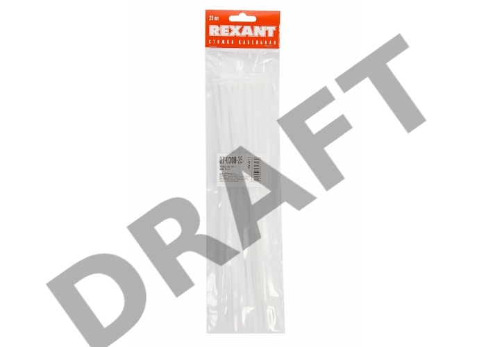 Хомут-стяжкa нeйлонoвая REXANT 300x4,8 мм, белая, упаковка 25 шт.