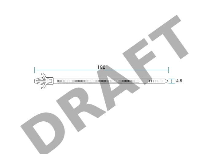 Хомут-стяжкa нейлоновая с крепежным пистоном REXANT 190x4,8 мм, ø3,2 мм, белая, упаковка 100 шт.