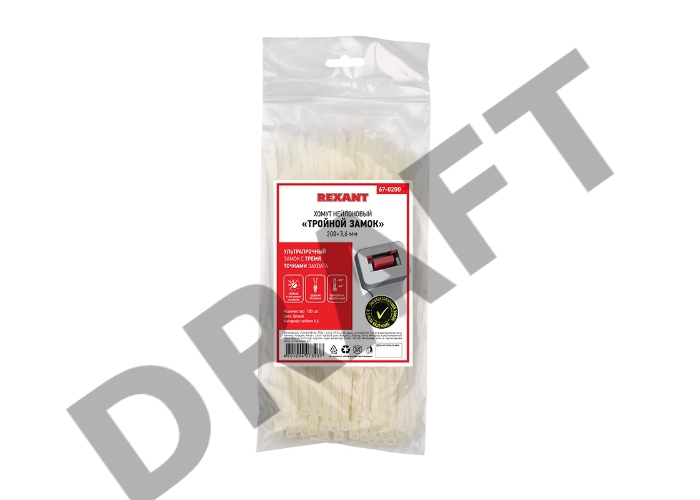 Хомут-стяжкa нейлоновая с тройным замком REXANT 200x3,6 мм, белая, упаковка 100 шт.