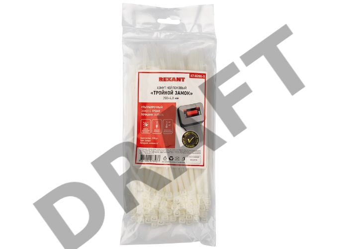Хомут-стяжкa нейлоновая с тройным замком REXANT 200x4,8 мм, белая, упаковка 100 шт.