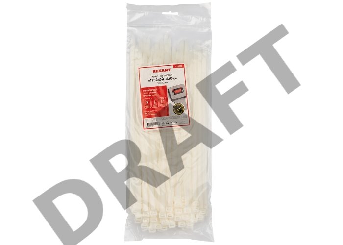Хомут-стяжкa нейлоновая с тройным замком REXANT 300x7,6 мм, белая, упаковка 100 шт.