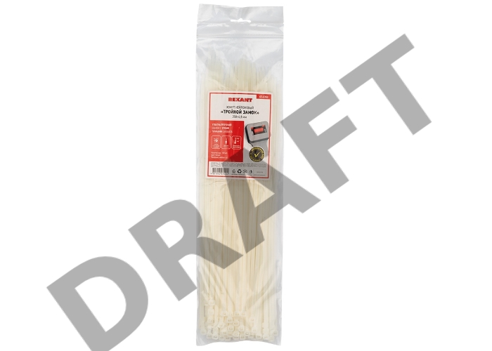 Хомут-стяжкa нейлоновая с тройным замком REXANT 350x4,8 мм, белая, упаковка 100 шт.