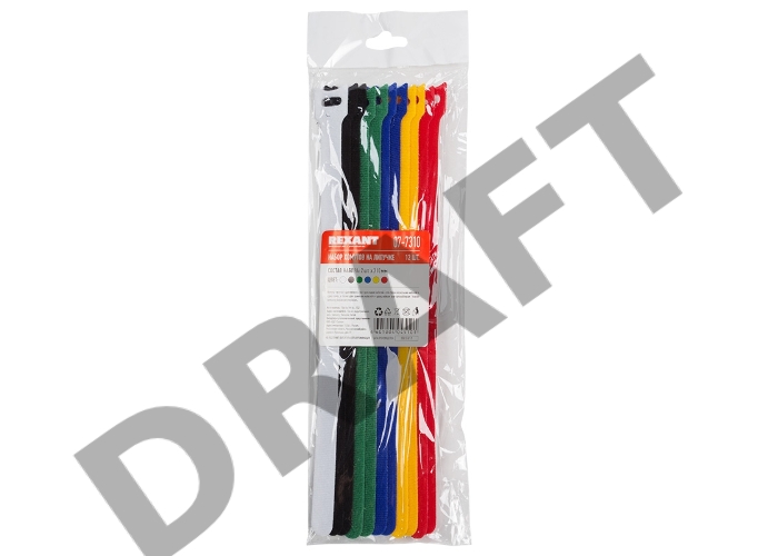 Набор хомутов-стяжек многоразовых на липучке REXANT 310х16 мм, цветная, упаковка 12 шт.