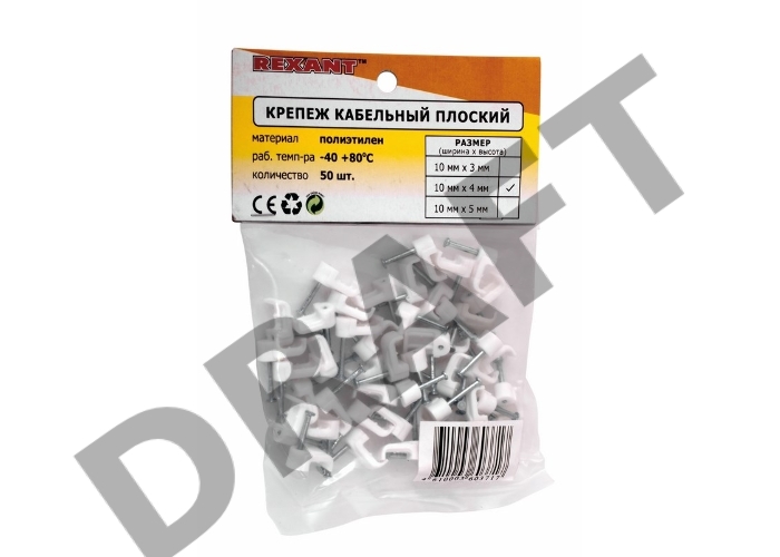 Крепеж кабеля плоский 10 х 4 мм, белый (упак. 50 шт) REXANT