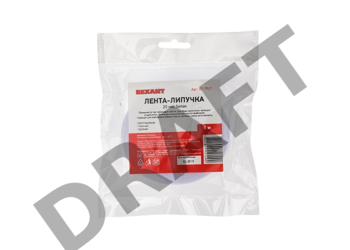 Лента-липучка многоразовая 5 м х 20 мм, белая (1 шт.) REXANT