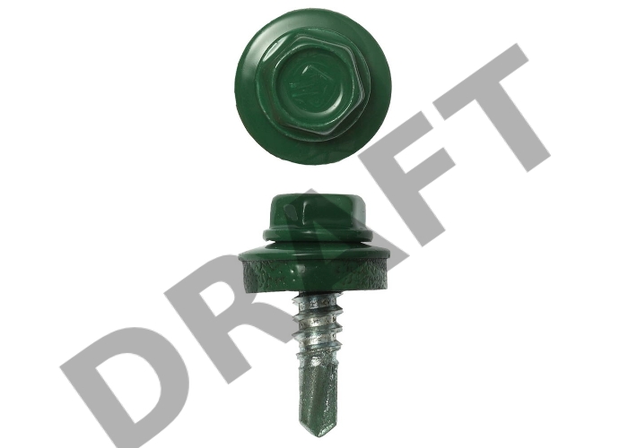 Саморезы СКМ кровельные, RAL 6002 зеленый лист, 19 х 5.5 мм, 2 500 шт, для металлических конструкций, ЗУБР Профессионал