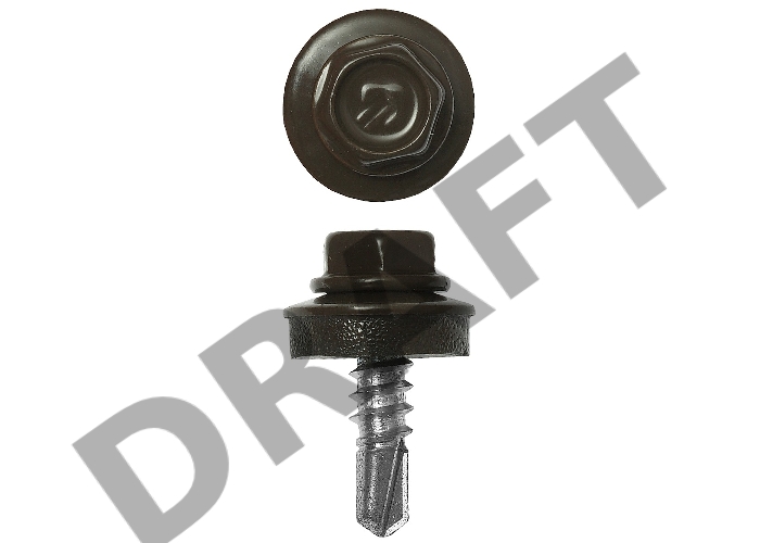 Саморезы СКМ кровельные, RAL 8028 земельно-коричневый, 25 х 5.5 мм, 1 800 шт, для металлических конструкций, ЗУБР