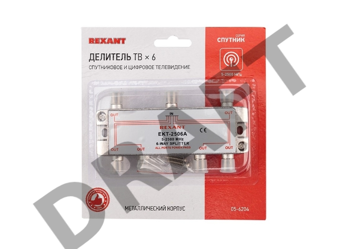 ДЕЛИТЕЛЬ ТВ х 6 под F разъём 5-2500 МГц "СПУТНИК" REXANT