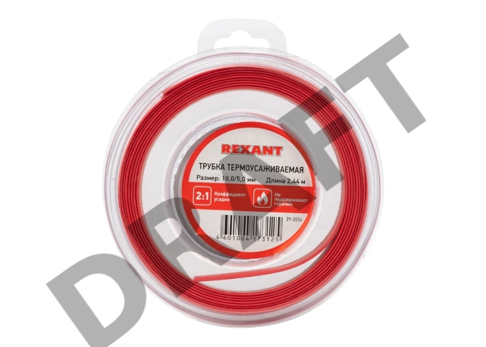 Трубка термоусаживаемая 10.0/5.0мм красн. ролик 2.44м Rexant 29-0054