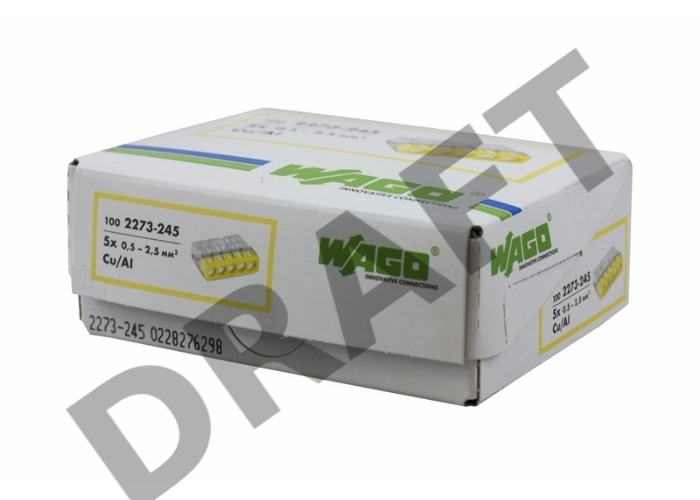 Клемма 5х(0.5-2.5мм) 5-х проводн. для распред. короб. (с контактн. пастой "Alu-Plus") WAGO 2273-245